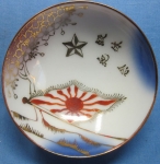 Japanese WWII Large Army Sake Cup, Star, Flag, Blossoms